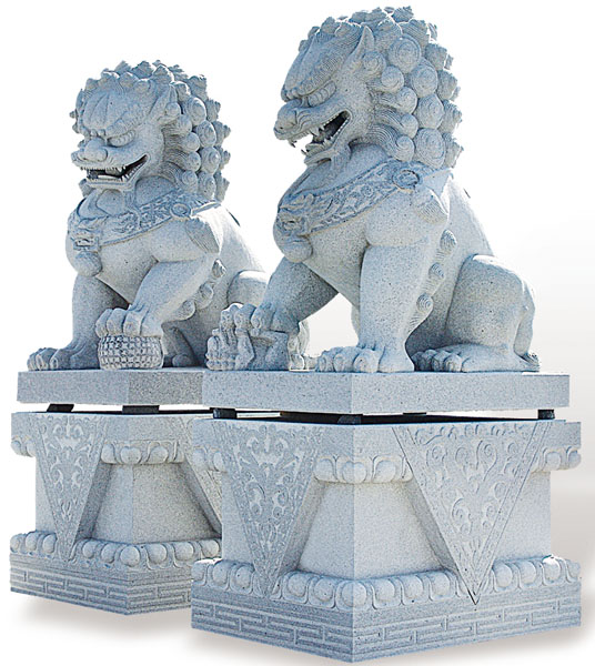 獅子,通常將之放在桌子上、窗戶臺、書架或許迎著門的矮柜上,也能夠放在陽臺上。多用于化解對面有不良物體(比方尖角沖射、或是有鏡子對著自家等)構成的形煞。遇窗戶或許門的對面可見大樹者,宜以一對獅子化解。在室內,放置此獅子,以減輕其對宅主運勢的破壞力,保佑全家安全。一雄一雌放在門口,是宗族興隆的標志。"雙獅護門"諧音"雙獅富門"。在民間有這樣的說法:"摸摸獅子頭,萬事不憂愁"。