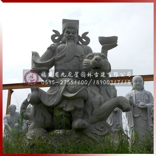 財神有文財神和武財神之分,文財神為比干,武財神為關羽和趙公明。武財神是漢族民間信仰的一位財神。關帝閣的武財神關羽手持青龍偃月刀,形象威武,義薄云天。趙公明一手拿元寶,一手拿長鞭。當今道教宮觀中的財神神像,多為黑面濃須,騎黑虎,一手執銀鞭,一手持元寶,全副戎裝。該財神像當為財神,即趙公元帥像。趙公元帥,即趙公明、趙玄壇。供奉武財神寄托了漢族勞動人民一種祛邪、避災、祈福的美好愿望。