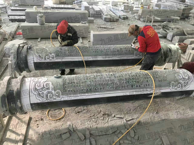 圓柱刻字青石刻字石柱寺院祠堂古建專用由福建省九龍星園林古建有限公司專業生產加工,我司常年供應傳統手工寺廟雕刻精雕龍風柱、石雕龍柱、盤龍柱、華表龍柱,廣場景區文化柱等各種款式石雕圓柱方柱。