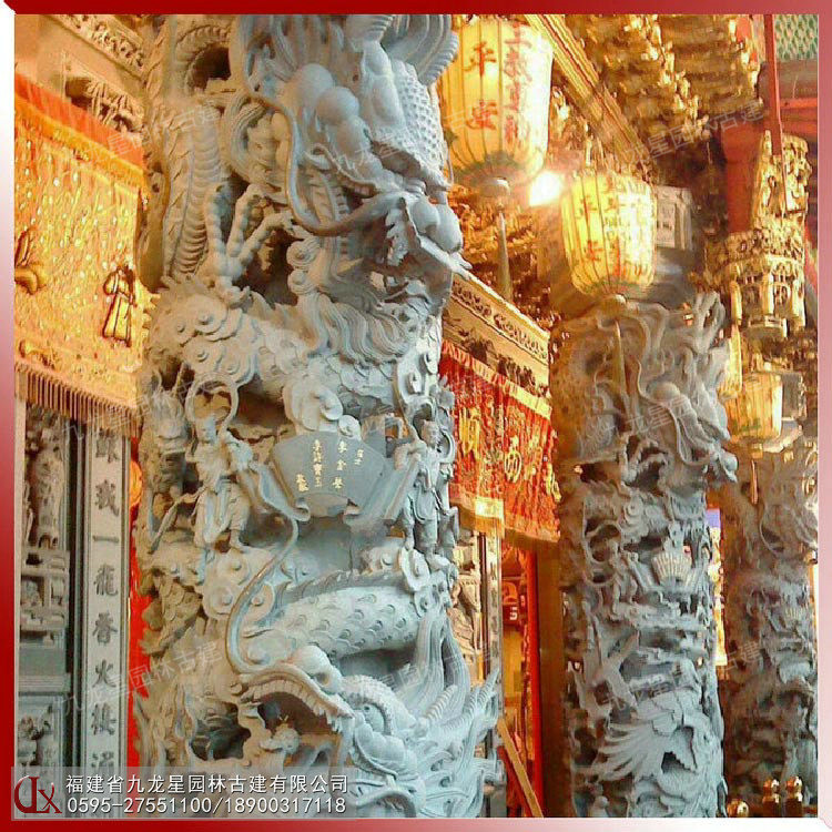 祠堂石雕龍鳳柱 羅源青石材龍鳳柱加工